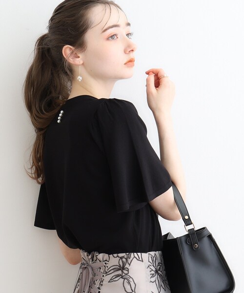 シンプルで使い勝手抜群!オンオフ着回せる、バックパールデザインフレア袖ニット 【接触冷感/UVカット/ハンドウォッシャブル】嬉しい機能付き ※この製品は、太陽光線中の紫外線(UV)を通しにくくします。この効果は永久的ではありません。 ~POINT~ フレアのお袖と、バックネックに華奢なフェイクパールがついているフェミニンで可愛い春夏ニットです。 ほんのり詰まった丸首ですっきりキレイ見えします。 二の腕がしっかり隠れる、肘までのフレア袖も嬉しいポイント◎ 【ディティール・機能】 レーヨンの糸にナイロンプレーティングを施していてキレイ見えします。 程よく柔らかく、薄手でも目の詰まった安心感のある編み地です。 肌触りのさらっとしたタッチの初夏まで着易い素材です。 ※照明の関係により、実際よりも色味が違って見える場合があります。また、パソコン・スマートフォンなどの環境により、若干製品と画像のカラーが異なる場合もございます。 【スタッフコメント】 ・maki(163 ) ふんわりフレア袖が体型カバーもしてくれる、お仕事にも使い易いシンプルニットです。スカートイン、パンツでアウトスタイルなど着方も様々◎一枚あると、重宝します。 【24SS NEW ARRIVAL】 【24SS NEW COLLECTION】 モデル情報:身長167cm B80 W59 H82 着用サイズ:38(M) 店舗へのお問い合わせ商品番号:508-18013 ●製品寸法: 38(M):着丈54cm B94cm 袖丈25cm 肩幅33cm 42(LL):着丈56cm B102cm 袖丈26cm 肩幅35cm 備考: