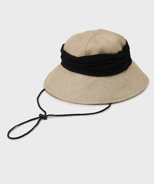 【デザイン】 ワイドなドレープリボンがポイントのツバ広ハット。 リボンはブラックで、大人の女性が使いやすい程よい甘さです。 本体のナチュラルな生地感は、スタイリングに夏らしさをプラスします。 取り外し可能なあご紐付きで、汗止め部分は接触冷感の生地を使用。 機能性とおしゃれを兼ね備えたハットです。 【素材】 ポリエステル 【コーディネート】 カジュアルなコーデにお勧め。 旅行やアウトドアにも。 ※照明の関係により、実際よりも色味が違って見える場合があります。また、パソコン・スマートフォンなどの環境により、若干製品と画像のカラーが異なる場合もございます。 店舗へのお問い合わせ商品番号:153-08450 ●製品寸法: FREE:内周54~57cm 高さ9.5cm つば8cm 備考: