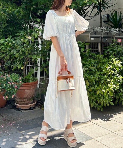 ★WEB限定アイテム★ 2024 SS 春夏アイテム 1枚で大人レディな着こなしへと導くロング丈のワンピース。すっきりと開いたスクエアネックが華奢なデコルテラインを演出。バルーンスリーブがエレガントな雰囲気です。高めのウエストからふわりと広がるシルエットでスタイルアップを狙えるのも◎。透け感のある生地もスカート部分に裏地を貼っているので安心して着られます。バックの華奢なリボンもキュートなアクセントに。・ウエストゴム【以下クロ参考。カラーにより多少の誤差あり】・透け感:やや透ける・伸縮性:なし(表地)・生地の厚さ:薄い・裏地:あり