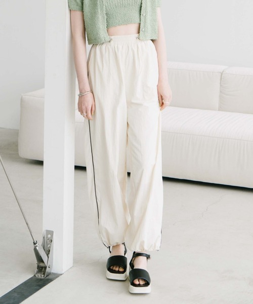 ■カジュアル派さんマストバイボトム■トレンドライクなスタイリングに欠かせないパラシュートパンツ。サイドラインでよりスポーティーなスタイルが叶う今年1枚は欲しいアイテムです。裾部分の絞りで長さの調節が可能。緩めたりきつくしたりご調整していただくけるので身長も関係なく着ていただけます。ナイロン素材は軽さが特徴的。さらっとした着心地なので夏まで着用可能です。トレンドのビスチェ合わせとのスポーティーミックスなスタイリングがおすすめ♪ーーーーーーーーーーーーーーー透け感:ホワイト若干あり裏地:あり伸縮性:ウエストゴム光沢感:なし生地厚さ:普通洗濯方法:手洗い可※詳しいお手入れ方法は商品についているタグをご覧くださいーーーーーーーーーーーーーーー※ご利用のモニター環境により、実際の色味と多少異なる場合がございます。… information … 欲しいitemをお気に入り登録(♡マークをclick) ・お買いのがし対策…完売itemの再入荷やラスト1点の情報をお知らせ ・欲しいitemをお得にget…price downになったらいち早くお知らせ ・スムーズ検索…ZOZOのお気に入りアイテムページで簡単checkできるから、再検索不要♪