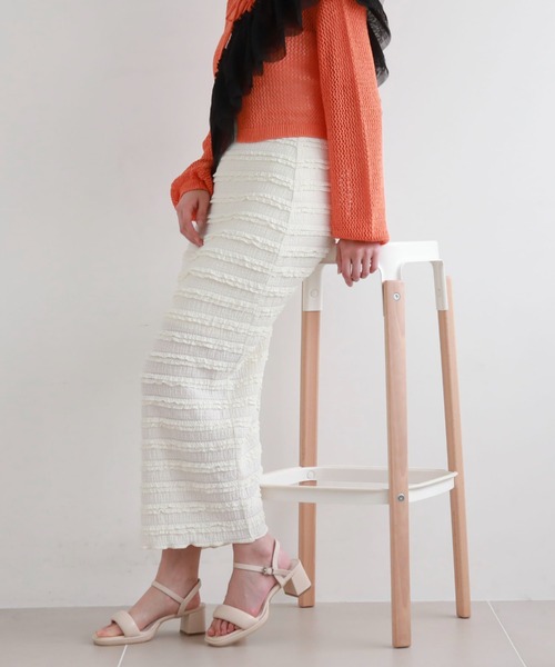 ■トレンドスカート■今年トレンドのタイトフリルスカート。着ていただくとトレンドコーデに早変わりするので、今季マストバイアイテム。伸縮性のある生地は着心地抜群。後ろにスリットが入っているので、足さばきも楽々行えます。細かめのフリルでデザイン感アップ。Tシャツで合わせていただいてもシンプルになりすぎずコーディネートのポイントになります。ビスチェ合わせの今年らしい着こなしがおすすめです♪ーーーーーーーーーーーーーーー透け感:なし裏地:あり伸縮性:あり光沢感:なし生地厚さ:普通洗濯方法:手洗い可※詳しいお手入れ方法は商品についているタグをご覧くださいーーーーーーーーーーーーーーー※ご利用のモニター環境により、実際の色味と多少異なる場合がございます。… information … 欲しいitemをお気に入り登録(♡マークをclick) ・お買いのがし対策…完売itemの再入荷やラスト1点の情報をお知らせ ・欲しいitemをお得にget…pricedownになったらいち早くお知らせ ・スムーズ検索…ZOZOのお気に入りアイテムページで簡単checkできるから、再検索不要♪