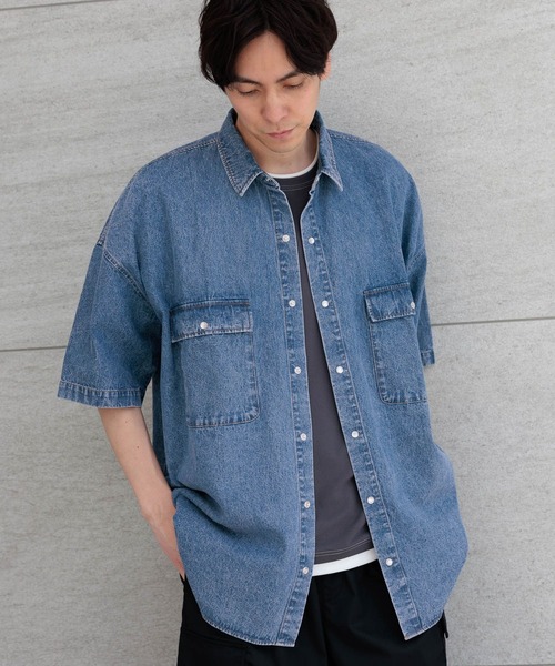 少しゆとりのあるBIGシルエットのデニムシャツ。インナーも着やすいサイズ感で、合わせるボトムも選ばずスタイリングできる1枚です。前閉じではもちろん、ボタンを開けて羽織としても〇