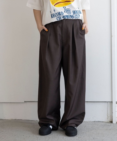 ウエストのタックデザインで1枚でお洒落を叶えるスラックス ハイウエストでボディラインを拾わない落ち感のあるワイドシルエット。 サラッとした軽い素材でキレイめからストリートまで幅広く活躍します。 春夏はチビTやビックシルエットトップスなど様々なアイテムと着回し可能。 〈注意事項〉 ・サンプルにて撮影をしておりますので、実際の商品とは素材や仕様・加工・サイズ等が若干異なる場合がございます。 ・モニター・環境等により実際の商品と色味が多少異なって表示される場合がございます。予めご了承をお願いいたします。 ・撮影環境により、光の当たり具合で色味が違って見える場合があります。あらかじめご了承下さい。 ▼気になるアイテムは《お気に入り登録》がおすすめです! 完売カラーの再入荷情報、セール情報、ラスト1点の通知を受け取ることができます! ▼《ブランドのお気に入り登録》で新商品や再入荷などのお得な情報をいち早くお知らせします。