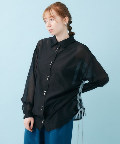 普段のコーデにプラスしてこなれた印象に◎○POINT・そのまますとんと垂らしても、ギャザーを寄せてエアリーにも、サイドのコードを絞る事で雰囲気を変えてお召いただけます。・さり気ない配色使いがワンポイントに。・ひんやりとした涼感が心地良い再生繊維(セルロース)の生地をたっぷりと使用したゆとりのあるシルエットも魅力の一つです。○STYLING・ヒップがしっかり隠れる安心丈のシャツはパンツとのコーディネートがバランス良く決まります。裏地:なし光沢:なし伸縮性:なし透け感:あり生地の厚さ:薄手ポケット:なし※照明の都合上、多少の色ブレが生じてしまう可能性がございますので、予めご了承くださいますようお願いいたします。---------------------------------------------------●お気に入り登録でお得情報を手に入れよう!「商品のお気に入り登録」をすると、再入荷通知や、ラスト1点の通知、セールの通知など、お得情報が届きます。また、マイページでいつでも確認が可能になります。「ブランドのお気に入り登録」をすると、新商品や再入荷、などいち早くブランドの最新情報をお届けします。ぜひ、ご利用ください。----------------------------------------------------