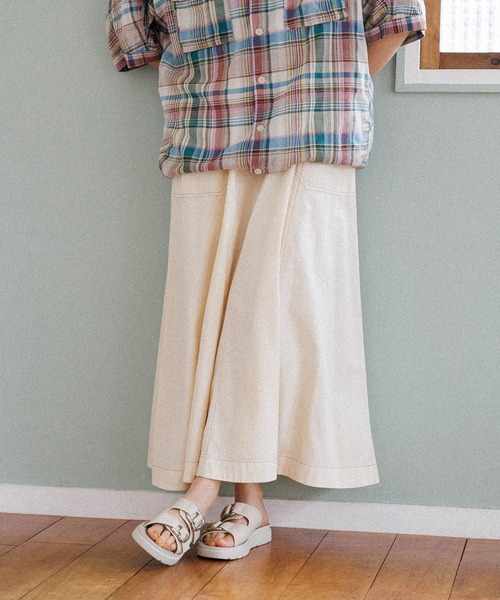 ニコアンド大人気スカートに新色登場!■素材特性オールシーズンで使えるコットン素材。デニム生地の中でも柔らかくしなやかに動くのが特徴です。■デザインニコアンド定番のベルト付きスカートが今期も登場!ウエストはゴムとベルトで幅広く調節可能です◎薄手で柔らかめのデニムを使用しているので、動くたびにフレアのきれいなシルエットをお楽しみいただけます♪■おすすめスタイリングカジュアルなTシャツを合わせてウエストタックインがおすすめです◎