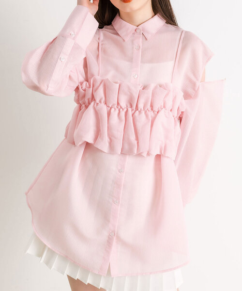 透け感がかわいいセットアイテム■デザイン・これだけでトレンドコーデが完成するビスチェとシャツのセットアイテム。・シャツは透け感があり、肩を開けて着ると抜け感が出て女性らしさをプラスできます。・肩の部分はボタンで開け閉めできるので、肌見せを調節して着用していただけます。・バルーンビスチェはふわふわで存在感があり、コーデのポイントになります。・後ろリボンでビスチェを調節でき、後ろ姿まで可愛く着ていただけます。■カラー・オフ/ミント/サックス/ピンクの4色展開■スタイリング・ミニ丈のボトムを合わせるとガーリーに、ロングスカートを合わせると大人っぽく着用していただけます。・デニムやカーゴパンツなどのカジュアルアイテムとの相性も◎・シャツはカップ付きインナーやキャミワンピと合わせたフェミニンコーデがおすすめ。・ビスチェはコンパクトなサイズ感のTシャツやシアートップスなどとのレイヤードコーデも可愛いです。---------------------裏地:なし光沢感:なし透け感:あり伸縮性:あり(ビスチェ)手洗い: 可能タンブラー乾燥:不可アイロン: 150℃まで---------------------※サンプルで撮影している為、実際の商品と若干仕様が異なる場合がございます。※着用、お取り扱いの際は、商品についている品質表示とアテンションタグを必ずご確認下さい。※ご覧のモニター環境や撮影環境により実際の商品と多少色味が異なって見える場合がございます。ご理解の程よろしくお願いいたします。■お気に入り登録のおすすめ【気になるアイテムを登録】ハートをクリックしてお気に入りに登録すると完売カラーの再入荷やラスト1点の通知、セールの通知を受けとることができます。【ブランドを登録】新商品や再入荷、セール通知など、いち早くブランドの情報を受けとることができます。