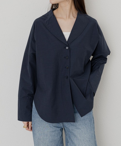 【2024SS】 襟付きでジャケット風に着られるシャツアイテム。 襟のカットや長めのカフスがマンネリ化するシャツアイテムに一癖加えてくれます。 ボタンを閉じてトップスとしても、すべて開けて羽織としても使える万能アイテム。 ボトムスにインした時にもボタンが見えるよう高めの位置にあり、スタイルアップ効果も◎ 梅雨の肌寒い時期や、夏の冷房よけにもおすすめです。 <カラー展開> ・オフホワイト(OffWhite)ボタンアクセントになる清涼感のある配色 ・ネイビー(Navy)ボタン同色で落ち着いた印象に <素材感> 透け感:あり 裏地:なし 生地の厚さ:普通 光沢:なし ポケット:あり お取扱いについて ・洗濯:液温は40°Cを限度とし、手洗いができる ・漂白:塩素系及び酸素系漂白剤の使用禁止 ・乾燥:タンブル乾燥禁止、日陰のつり干しがよい ・アイロン:底面温度110°Cを限度としてスチームなしで アイロン仕上げができる ・クリーニング:石油系浴剤による弱いドライクリーニングができる、非常に弱い操作によるウエットクリーニングができる #KS-139