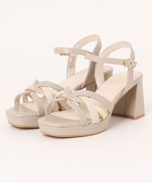 女性らしいコードデザインのヒールサンダルは、メタリックカラーを配色することで上品で大人っぽい印象に仕上げています。 フロントに厚みを持たすことで高低差を軽減して履きやすく、ラクに脚長効果をもたらします。 ストラップはフック仕様で、着脱のわずらわしさを軽減しています。 トレンドに左右されない定番性の高いコードデザインは、コーディネイトを選ばずに幅広く使える1足です。