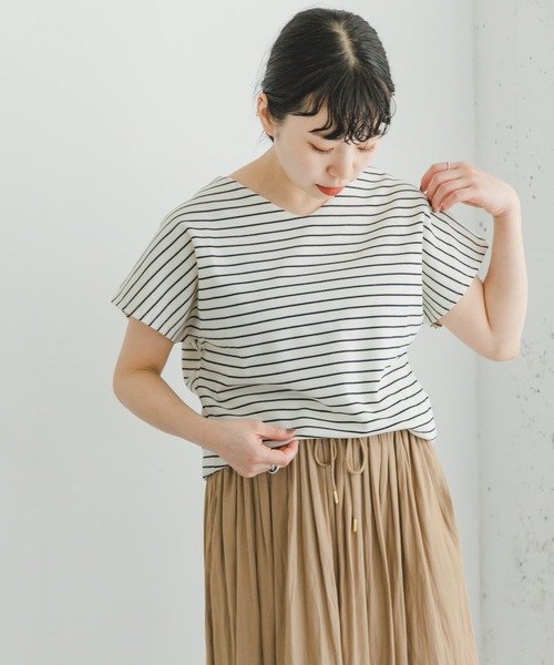【累計販売数5.6万枚突破!】毎シーズン好評頂いているミラノリブシリーズのフレンチスリーブタイプ。心地のいい編み地としっとりとした風合いが、カットソーながら上品で綺麗めな印象に◎フレンチスリーブなので肩回りが気になりにくく、Vネックがすっきりとした印象をもたせてくれます。【2024 Spring/Summer】【24SS】※商品画像は、光の当たり具合やパソコンなどの閲覧環境により、実際の色味と異なって見える場合がございます。予めご了承ください。※商品の色味の目安は、商品単体の画像をご参照ください。▼お気に入り登録のおすすめ▼お気に入り登録商品は、マイページにて現在の価格情報や在庫状況の確認が可能です。お買い物リストの管理に是非ご利用下さい。素材感透け感 : ややあり(OFF)伸縮性 : ややあり裏地 : なし光沢 : なしポケット : なし