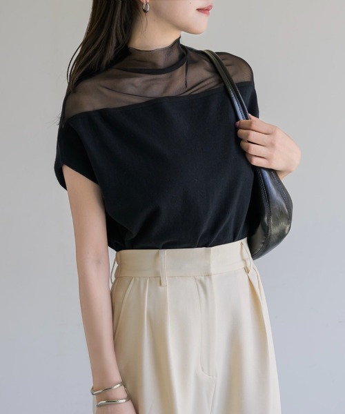 【お気に入り登録者数5,000人突破!!!】シアードッキングトップス今季トレンドのシアーとサマーニットがドッキングになった1枚でも綺麗にご着用いただけるアイテムが登場!!!デザイン性のあるアイテムなのでどんなボトムスと合わせてもこなれ感のあるお洒落コーデが完成します。それぞれのカラーに合わせた配色ドッキングとなっておりますので普段デザインものに挑戦したくてもなかなかできないというお客様にもおすすめなアイテム。■point・肌触りの良いシアーとサマーニットの生地感・通気性が良いので着心地◎・1枚で主役トップスになるデザイン・伸縮性がある生地感・首元のシアーが上品な印象に・大人カジュアル~フェミニンまで合わせやすいアイテム・春・夏・秋まで幅広いシーズン着用可能!■detailシンプルでどんなデザイン・カラーのボトムスとも合わせやすいホワイト、ブラックに加えて程よく女性らしさと抜け感を与えてくれるグレージュの3色展開!細すぎず太すぎないシルエットスタイルアップ効果◎インしていただいてもボトムスに響きにくい絶妙な丈感もポイントです。■fabric伸びる素材だからストレスフリーの着心地◎さらっとした質感でオールシーズン使えます!……………………透け感:あり(シアー部分のみ)厚さ:薄い伸縮性:あり裏地:なし……………………■coordinate春夏はキャミの上にセットで、デニムやスラックス、綺麗めスカートとも相性◎トップスにデザイン性のあるアイテムなのでどんなボトムスと合わせてもトレンドを取り入れたこなれ感のあるコーデに仕上がります!≡《お気に入り登録》でお得な情報がいっぱい ≡・「商品のお気に入り登録」で再入荷通知や、 ラスト1点の通知、セール通知も受け取ることができます。・「ブランドのお気に入り登録」で新商品や再入荷など、 お得な情報を受け取ることができます!