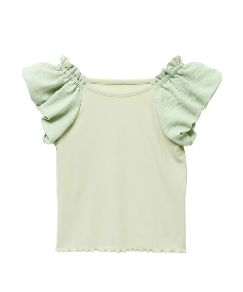 ■Detail オフショルとしても着用できる2WAYカットソー 袖は表面感のある布帛を使用し、見頃は着心地の良いリブカットソーを使用 裾のメローミシンもアクセントになります コーディネイトがしやすい便利な1枚 ■Fabric ■Size F ■Coordinate ■Styling item FLOWER MINI SKIRT HOUNDSTOOTH KNIT MINI SK CRYSTAL DENIM PT SIDE RIBBON PT