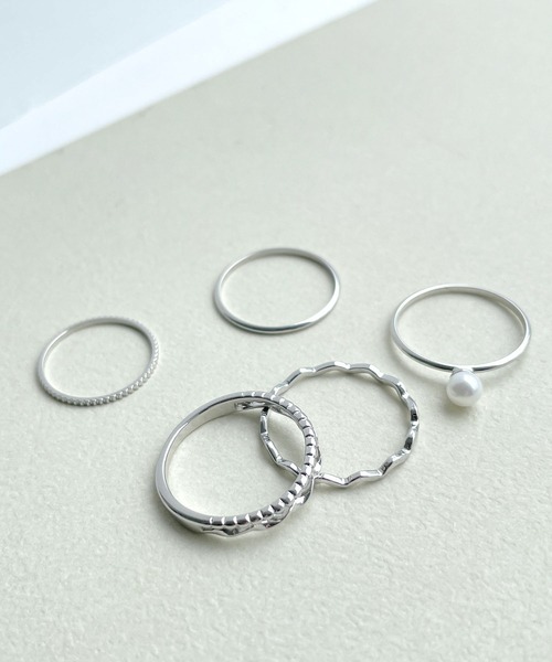 自由な取り入れ方で手元のおしゃれに磨きをかけて。【デザイン・シルエット】・デザイン違いを揃えた、5個セットのメタルリング。・華奢なデザインが女性らしく、組み合わせるのが楽しいアイテム。【カラー】・ゴールド、シルバーの2色展開。【スタイリングポイント】・繊細なデザインは合わせやすく、手持ちの腕時計やブレスレットとのコーディネートも楽しめる。・オンオフ問わず取り入れられるのも◎。※撮影時の光、お使いのモニター環境によって色の見え方が違う場合がございます。