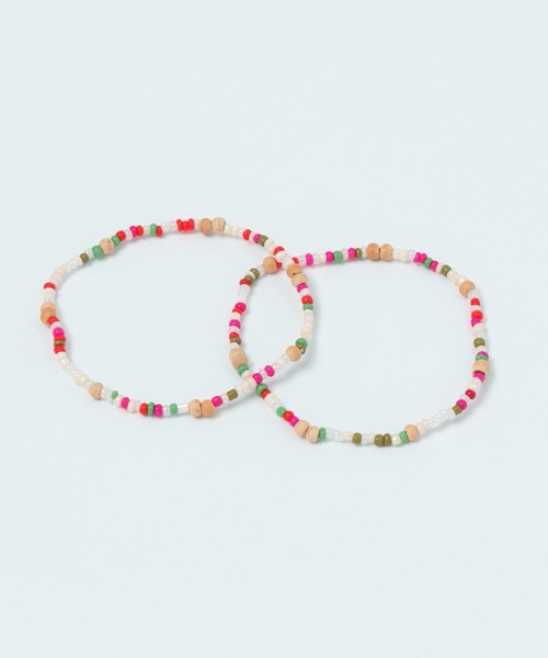 ーーー夏らしいカラービーズのブレスレット。お得な2本セットなので単品使いや2個付けはもちろん、お手持ちのブレスレットと重ね付けをするのも素敵です♪カラフルな色合いがコーディネートのアクセントに◎ーーー