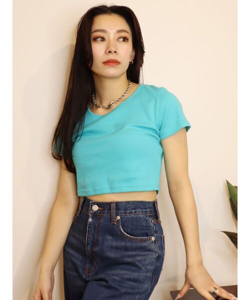【クロップド丈】 ■デザイン EVRIS(エヴリス)で毎年定番人気のベーシックな短丈Tシャツです。 伸縮性のあるフライス生地を使用しており、さらっとした着心地。 カラバリも揃えたくなる、プチプライスも魅力的です。 ■スタイリング 一枚での着用はもちろん、キャミワンピのインナーなどにも使いやすい生地感、サイズ感です。 シンプルなデニム合わせでもスタイルUPが叶う優秀な半袖Tです。 -------------- 透け感:なし 裏地:なし 生地の厚み:薄手 伸縮性:あり --------------