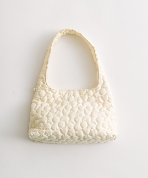 花柄のキルティングが目を惹くハンドルバッグ■デザイン・お花のキルティングがかわいいバッグ。・ガーリーはもちろん、カジュアルから韓国コーデまで幅広いテイストになじむデザインです。・マチがあるのでコンパクトなサイズ感ながらペットボトルもすっぽり入るサイズです。・便利な内ポケット付きで、細かいものを整理できます。・自立するのも嬉しいポイント。・チャームを付けられる金具がついているので、お持ちのチャームを付けて自分好みにアレンジできます。■カラー・アイボリー/ピンク/ブルーの3色展開重さ: 約140g※サンプルで撮影している為、実際の商品と若干仕様が異なる場合がございます。※着用、お取り扱いの際は、商品についている品質表示とアテンションタグを必ずご確認下さい。※湿気の多い場所での保管や、水に濡れたまま放置しますと、変色、色移り、サビ、カビ、破損の原因となります。※ご覧のモニター環境や撮影環境により実際の商品と多少色味が異なって見える場合がございます。ご理解の程よろしくお願いいたします。 ■お気に入り登録のおすすめ【気になるアイテムを登録】ハートをクリックしてお気に入りに登録すると完売カラーの再入荷やラスト1点の通知、セールの通知を受けとることができます。【ブランドを登録】新商品や再入荷、セール通知など、いち早くブランドの情報を受けとることができます。