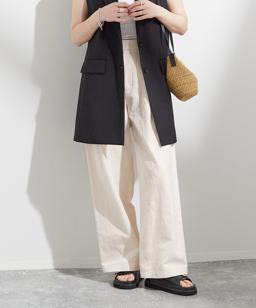 【2024SS】 JOURNAL STANDARD L'ESSAGE 柔らかめな素材で夏にも穿きやすいチノパンツが登場。 タックを入れることでボリュームを出したストレート型で、程良いワイドシルエットに仕上げました。 女性らしいブラウスやカジュアルなスタイリングにも様になる一枚。 カジュアルなスタイリングには欠かせない一本は持っておきたいアイテムです。 ********************** 透け感:なし 裏地:なし 伸縮性:なし 光沢感:なし 生地の厚さ:普通 ********************** 【スタッフ着用コメント】 《スタッフT》 年齢:40代前半/身長:165cm/着用サイズ:38 サイズ感:ゆったりしたシルエットで楽に穿けます。 素材感:柔らかいチノ素材。 着心地:チノの中でも柔らかく、穿き心地が良いです。 ********************** ※取り扱いについては、商品についている洗濯表示でご確認ください。 ※照明の関係により、実際よりも色味が違って見える場合があります。 またパソコン・スマートフォンなどの環境により、若干製品と画像のカラーが異なる場合もございます。 ※商品の色味は、商品アップ画像をご参照ください。 本体:洗濯機洗い(弱)