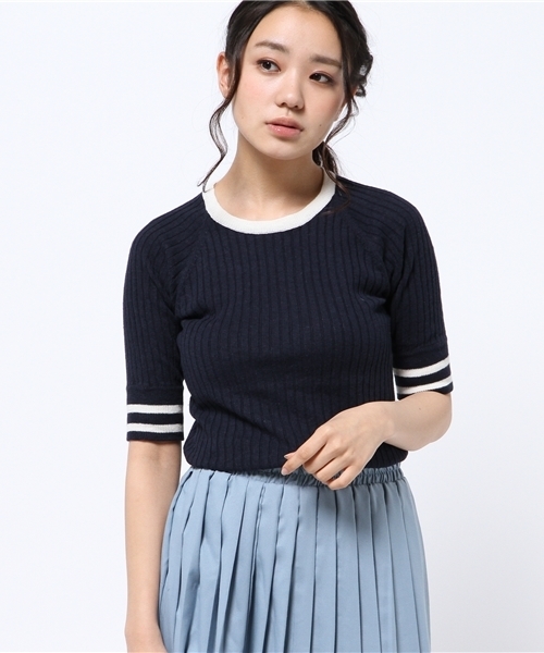 コットンとリネンをブレンドして仕上げたリブ編みニット。真夏でもサラッとした肌触りが気持ち良い、手洗いも可能な一枚です。 程よくボディラインにフィットした女性らしさ際立つシルエットで、衿と袖口に入ったラインが春夏らしい爽やかな雰囲気をプラス。 ハイウエストでスカートにインした着こなしも、ワイドパンツなどボリュームのあるボトムスにアウトで合わせても相性の良いすっきりとしたシルエットがポイントです。 店舗へお問い合わせの際は下記品番をお伝えください。 品番:93-15-0200-803 Model:H160 B78 W59 H82 SIZE:ONE SIZE