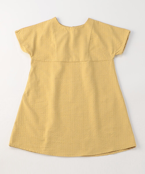 **親子でおそろい!LINKコーデ**《デザイン》前後で着られる2WAYの半袖アッパッパです。シャンブレーの爽やかなサッカー素材が新鮮で、体のラインを拾わないリラックス感のあるワンピースです。裾に向かってきれいなAラインのシルエットで、前身頃は、ウエストラインを高めの位置で切り替え、ドルマン風の続き袖にしています。後身頃は、釦あきのクルーネックで、シンプルな袖付きのデザインにしています。実用性を兼ね備えたシームポケット付きです。毎日の通園・通学にもぴったりな楽ちんワンピースです。《リンクコーデ》下記品番とリンクコーデとしてお召しいただけます。・レディースサイズ(品番:52-31OG72-204)※在庫がない場合もございますので、予めご了承くださいませ。《素材》TCサッカー…綿とポリエステルの糸で織ったサッカー素材です。織りで凹凸感を出しています。ストライプ状の凹凸感は縦長効果があり、肌離れもよいサラッとした素材です。ポリエステル糸だけを染めた片染めで、シャンブレー調に見せています。ポリエステル混ですのでシワになりにくいです。ご自宅で洗濯機洗い可能です。#春コーデ#夏コーデ#リンクコーデ #お揃いコーデ#親子コーデ※画像の商品はサンプルとなりますので実際の商品と仕様、加工、サイズが若干異なる場合がございます。※こちらの商品はFIVE FOXes独自の採寸方法となっています。本サイトのサイズガイドと採寸方法が異なる場合がありますのでご了承ください。