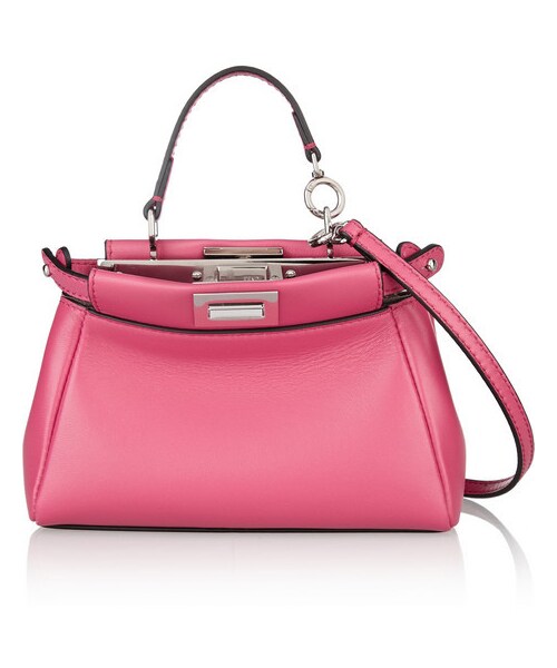 Fendi reworks its iconic 'Peekaboo' bag in a compact micro version. This small design is perfect for a night out - the interior is finished with two card slots and has just enough space for a phone and lipstick. Carry it in hand or cross-body by the detachable shoulder bag. Fuchsia leather (Lamb) Turn lock fastening at top Weighs approximately 1.1lbs/ 0.5kg