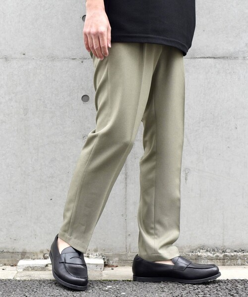 麻調ポリエステル"Reflax(R)"を使用したテーパードイージーパンツ 【素材特性】 イージーケアが可能なリネンライク素材"Reflax(R)"を使用。 春夏にピッタリなドライな風合いで、シワになりにくいのも特徴。 毛羽も出にくい多機能素材となっています。 【デザイン】 ベーシックな1タックテーパードイージーパンツ。 程よい厚みの生地感なのでシルエットがキレイな状態で着用可能です。 春先から残暑まで、長い期間着用可能なのも◎ キレイめスタイルからカジュアルスタイルまで、1着もっていると活躍間違い無しのアイテムとなっています! 【注意事項】 ※末永く愛用頂く為に、アテンションタグ・洗濯ネームを必ずご確認の上、着用又はお取り扱いください。 ※撮影環境による光の当たり具合やパソコン・スマートフォンなどの閲覧環境によって、実際の色味と異なって見える場合があります。 商品の色味は商品単体で撮影した画像をご参照ください。 ※画像の商品はサンプルです。 実際の商品と仕様、加工、サイズが若干異なる場合がございます。