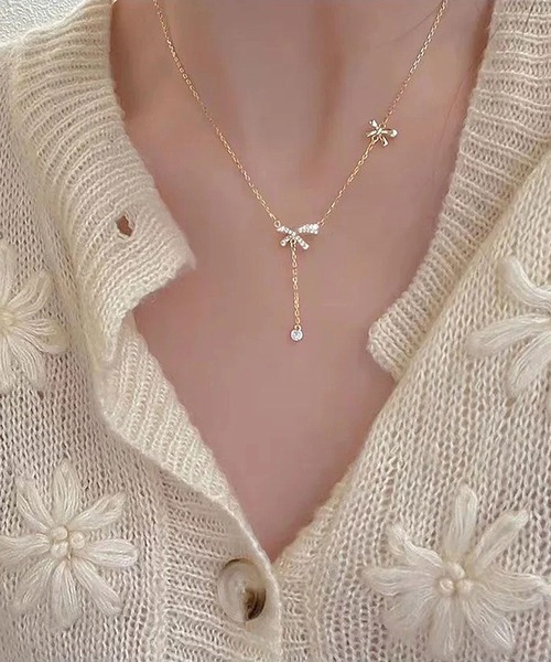 【 ammy. / エイミードット 】 レイヤー リボン ジルコニア ネックレス レイヤーで揺れるリボンとジルコニアが女性らしいネックレス 胸元が空いているお洋服やジャケットからチラリと見える雰囲気が可愛い お色はゴールドとシルバーの2色展開になっております シンプルだけど存在感があるネックレスはひとつ持っておくと重宝するアイテムです ※撮影・モニター環境等により実際の商品の色味と異なって見える場合がございます。 【インフォメーション】 ◆商品のお気に入り登録 完売カラーの再入荷通知を受け取ることができます。 ぜひご登録ください♪ ◆ブランドのお気に入り登録 新商品や再入荷などのお得情報を受け取ることができます。 ぜひご登録お願いします