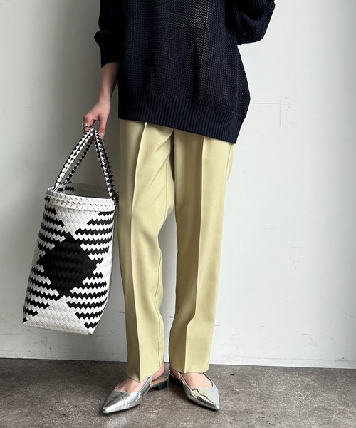 ■2024 SPRING & SUMMER ITEM■ WEB限定‼ テーパードのすっきりとしたシルエットが美しい! テーパードラインとセンタープレスで美脚効果抜群のパンツ。 美脚の秘訣は、お腹周りをスッキリと見せるタック使いと縦ラインを強調するセンタープレス。 さらに、脚長効果期待大のハイウエストデザインまでも。 合わせるトップスも選ばないので幅広いスタイルを楽しんでいただけますよ♪ ウエストは、ゴム仕様で調節用の紐もついているので履き心地抜群です。 きちんと感のあるデザインで、オンオフ問わず着用していただけますよ。 - POINT - ・WEBでしか買えないアイテム ・オン、オフ使える万能パンツ ・一度穿くと病みつきになる履き心地 --------------------------------洗濯:手洗い可能 透け感: なし 裏地: なし 伸縮性: ややあり -------------------------------- 【 ♡ をクリックでお得な情報をお知らせいたします 】 〈 商品のお気に入り登録 〉 お気に入りアイテムのお値下げ・再入荷・在庫ラスト1点など通知を受けることができます。 〈 ブランドのお気に入り登録 〉 DOUDOUの新商品や再入荷、セール、クーポン配布などお得な情報を受けることができます。 -------------------------------------- ※ 生産の都合上、お届け時期が前後する場合がございます。 ※ 掲載画像の商品の色味は、 撮影場所や光の当たり具合などにより色味が異なって見える場合がございます。 また、お客様のお使いのPC・スマートフォン等のモニター環境などにより色味が異なって見える場合がございます。予めご了承の上ご注文ください。 ※ 着用、お取り扱いの際は、商品についている品質表示とアテンションタグを必ずご確認下さい。