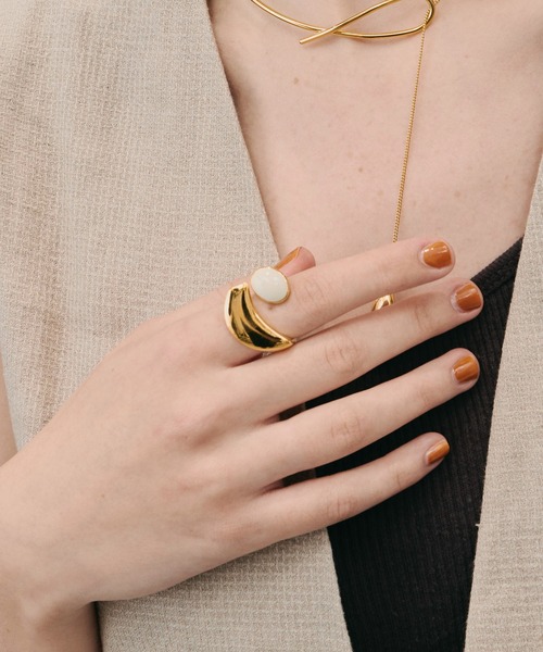 <loni 2024SS collection> 夜中に咲く花「月下美人」からインスピレーションを得てデザインしたリングです。 月の下で印象的に輝く花をイメージしたリングは手元でもこなれ感を演出してくれ、 石のように見えるカラーパーツはエポキシ樹脂を使用しています。 ホワイト×ゴールド ブラック×シルバー グレー×シルバー の3色展開。 黒は艶のある色味でモードな印象に、 それ以外のカラーは色の中にパールが入っていてキラッと輝く女性らしい印象に。 石を使っていないので割れることがないため、取り扱いがしやすいことも魅力です。 ▪️point ・肌に優しいニッケルフリーメッキ ・日本製 ・巾着付き ▪️detail ・肌に優しいニッケルフリーメッキ 金属アレルギーの方にもお楽しみいただけるよう、 アレルギーの原因とされるニッケルをほぼ含まずメッキ処理を施したアクセサリーです。 ※ 必ずしもアレルギー反応が出ないということではございませんので、お肌に敏感な方は慎重にご購入下さいませ。 loni のアイテムはsilver925 or 18KGメッキを使用しています。 メッキ製品にはどれも寿命があり、使用環境(アルコールや手洗いなど)によってメッキが剥げやすくなります。 使用後は柔らかい布で汗や水分を拭き取り、空気に触れて酸化しないよう ジッパー付ポリ袋や付属の巾着に入れて保管することで美しい状態を長く楽しめます。 ※太陽光や消毒液は変色の原因となりますので、ご使用の際のご注意と、直射日光の当たらない場所での保管をお願い致します。 ※ご覧のモニター環境により、画像の色味と多少異なる場合がございます。 ▪️ loni とは おだやかに、力強く、そして可憐に生きる植物をテーマに、自然と目を惹くアクセリーを展開します。 ブランド名にもなったloniceraの花言葉は絆。 loniのアクセサリーをつけておしゃれをすることで 人と人との繋がりや、自分自身との絆を深めてほしいという想いを込めています。 “ お気に入り登録 “ でお得な情報が! ・「 商品のお気に入り登録 」で再入荷通知や、ラスト1点のお知らせ、セールのお知らせも受け取ることができます。 ・「 ブランドのお気に入り登録 」で新商品や再入荷など、お得な情報を受け取ることができます。 ぜひご登録ください◎ ※ご注文いただいた予約商品のお届け時期のご確認は、注文履歴ページよりご確認頂けます。