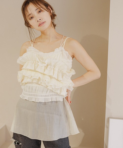 ーーーレイヤードも楽しめるギャザーフリルがポイントのキャミソールビスチェーーー■point・トレンドのデコラティブなギャザーフリルがポイントのアイテム。・表面感のある2素材を使った贅沢な仕様。・華奢見えする細めのストラップが大人可愛い・後ろリボンで調整が可能■styling同素材のスカート(品番:(120995)と合わせてワンピースとしてきるのはもちろん、デニム等のカジュアルボトムと合わせても◎※屋外の光や照明の当たり具合で、実際の商品の色味とカラー別画像の色味に若干の違いが発生する場合がございます。 詳細画像と併せてご確認の上、ご注文いただきますようお願い致します。【INFORMATION】■商品のお気に入り登録完売していても再入荷時に再入荷通知を受け取ることができますので、是非ご登録ください!■ブランドのお気に入り登録新商品や再入荷などの情報を受け取ることができますので、是非ご登録ください!
