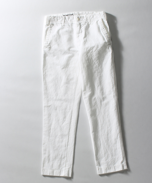 SAVE KHAKI UNITEDのパンツ 履きやすいライトなコットン/リネン素材を使用したトラウザースパンツ。 ベーシックなデザインにウォッシュドを施したこなれた表情が魅力で、様々なスタイリングにご使用頂けるアイテムです。 【SAVE KHAKI UNITED】 大人が楽しむ上質なベーシックウェア(日常着) 2006年に数々のアメリカ主要ブランドでデザイナー経験を積んだDavid Mullenによってニューヨークで設立されたブランド。 「デニムばかりがもてはやされている中でカーキ(チノパン)を救いたかった・・」というストレートなコンセプトがブランド名の由来となっており、ミリタリーとワークをベースにシンプルで都会的な洗練されたウェアを作り続けている。
