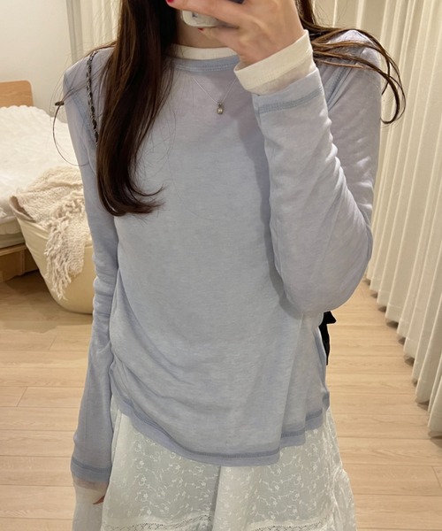 SPRING POPUPで大人気だったシアートップス新色“BLUE”を追加してオンラインにも登場!✴︎giunon select item✴︎■POINT・肩と袖口部分のさりげないステッチがポイント。・柔らかい透け感で、透け透けになりすぎないので着やすさ◎・肌触りもいいので、直接肌に当たってもチクチクしないのが嬉しいポイント。■STYLING・一枚ではもちろん、ワンピースやカーディガンのインナーとして◎・”ivory×blue“、“ivory×red”など2色重ねたレイヤードコーデもおすすめです!■COLORIVORY / RED / BLUE------------------透け感:あり裏地:なし伸縮性:ありポケット:なし------------------ ■SIZEFREE着丈58cm/肩幅36cm/身巾41cm/裾巾42cm/袖巾60cm▼商品のお気に入り登録再入荷通知や、ラスト1点の通知、セールの通知がいち早く届きます。▼ブランドのお気に入り登録新商品や再入荷など、いち早くブランドのお得な情報が届きます。※ご注文いただいた予約商品のお届け時期の確認は、注文履歴ページより行えます。※画像の商品はサンプルです。実際の商品と仕様、加工、サイズ、素材等が若干異なる場合がございます。