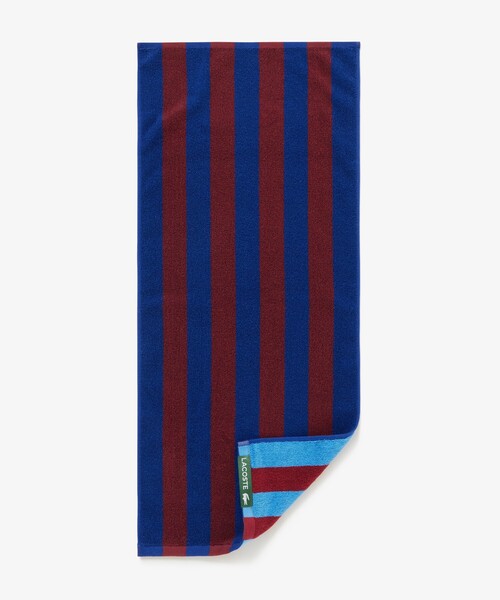 気分で使い分けられるリバーシブルストライプタオル ・コットン100%仕立てのパイル素材 ・表裏でカラーリングが異なるリバーシブルストライプデザイン ・汎用性の高いスクエアシルエット(34x80cm)