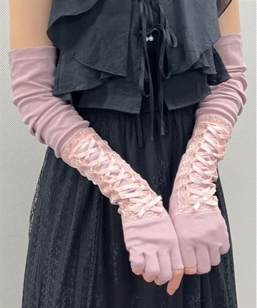 【アイテム説明】UVカット機能が嬉しい♪華やかなレースアップデザインのロング手袋です。【デザイン】ツヤのあるサテンリボンのレースアップに、繊細なレース・フリルを組み合わせたエレガントなデザイン。ボディは伸縮性のあるカット生地を使用しています。指先が開いているタイプなので、着用したままスマホ操作がしやすいのも嬉しいポイント◎持ち運びに便利な巾着ポーチ付きです。紫外線遮蔽率:約95%**********************.。.:✽ お気に入り登録のおすすめ ✽:.。.∇気になるアイテムを登録∇ハートをクリックしてお気に入りに登録すると完売カラーの再入荷やラスト1点の通知、セールの通知を受けとることができます。∇ブランドを登録∇新商品や再入荷、セール通知など、いち早くブランドの情報を受けとることができます。是非ご利用頂き、お買い物をお楽しみ下さい。.。.:✽ 商品について ✽:.。.・サイト上のカラー名と、お届け商品に記載されているカラー名が異なる場合がございます。・商品の色味は、撮影場所や光のあたり具合、お客様のお使いのPCのモニター環境などにより色味が違って見える場合がございます。予めご了承の上ご注文下さい。.。.:✽ 返品・キャンセルについて ✽:.。.・着用、洗濯後の返品は致かねます。・商品到着後、着用前に商品を確認して頂きますようお願い致します。