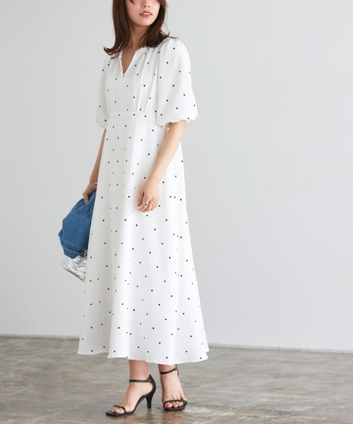 女性らしさを盛り込んだ“リップルドットフレアワンピース” さらっとした肌触りが魅力のリップル素材。程良くハリのある素材が綺麗なシルエットをキープします。 ボリュームのあるパフスリーブがフェミニンな印象に。デコルテラインをすっきりと見せてくれるキーネックで抜け感をプラス。裾に向かって広がるシルエットが女性らしさ溢れる一枚です◎ 透け感(淡色):若干あり 透け感(濃色):なし 伸縮性:表地のみ若干あり 裏地:スカート部分にのみあり ポケット:なし ファスナー:なし オフホワイトに若干透け感が生じます。 【ブランド】 marvelous by Pierrot(マーベラスバイピエロ) 【お買い物を楽しむための方法】 **商品のお気に入り登録** カートボタン横の♡をクリック! 気になるアイテムが完売しても再入荷のお知らせ通知や、在庫ラスト1点の通知、セールの通知が届きます。 **ブランドのお気に入り登録** ブランドトップページの「♡お気に入りブランドに追加」をクリック! 新商品や再入荷など、クーポン配布などのお得な情報を受け取ることができます。