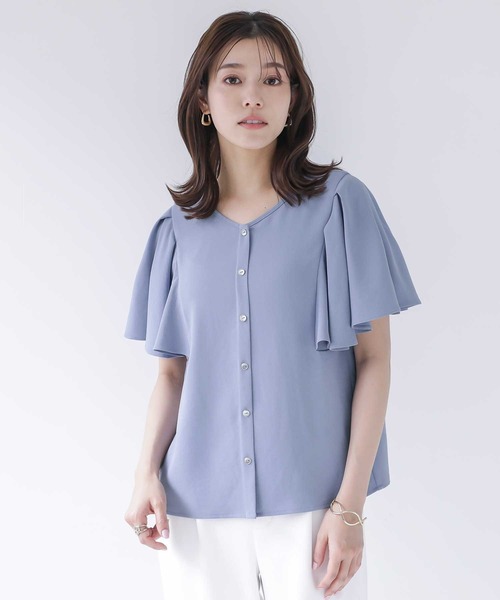 【 オンラインショップ限定先行販売 】■ Emilyan 2024SS オリジナル ■まるで着てないみたい魔法ブラウスモデルさんの撮影時の第一声が、「え!すごい!まるで着てないみたい!軽い!ラク!」でした!肩の凝るお洋服はもう卒業!軽くて動きやすくて洗えてシワにならない!まるで魔法みたいなデザインブラウスなんです。【 主役ブラウス6つの機能 】1 . UVカット95%!2 . 脅威の速乾性でお洗濯後すぐ乾く!3 . 接触冷感機能で涼しい着心地!4 . 2つの検査をクリアした防シワ性!5 . 縦横にストレッチで動きやすい!6 . 洗濯機で洗える!春~秋に涼しく着られる薄手ブラウス!薄手素材なのにラインが綺麗だからキチンと見えます♪※とっても薄くて軽いので、春~秋にはとってもオススメですが、寒い季節にはオススメしません!<<ディティール >>ネックは前後どちらでも着用できる2wayデザイン♪金縁のボタンをフロントにあしらったラウンドネックと、センターにギャザーを寄せたラウンドネックとなります。お袖はたっぷりのタックが作るフレアーお袖♪二の腕をしっかりとカバーする袖丈に仕立てています。身頃はゆとりのあるシルエットながら、とろんと落ち感があるので着ぶくれして見えにくく、INしてもOUTでもサマになる丈感です。フロントの金縁ボタンは飾りボタンです。<<お色展開 >>オフホワイト : どんなお洋服にも相性の良いほんのり生成りがかったアイボリー系のオフホワイトライトグレー : ベージュにも近いグレージュサックス : 日本人の肌に馴染みの良い落着きあるサックス<< サイズ選びについて >>こちらの商品は身体のラインを拾いすぎない、程よくゆとりのあるシルエットです。目安普段S(7号)サイズの方はSサイズ普段M(9号)サイズの方はMサイズ普段L(11号)サイズの方はLサイズ===========================生地の厚さ:★☆☆☆☆ (透け感ある薄手素材)透け感:透け感があります。裏地:なし伸縮性:あり光沢感:なし生地感 :さらっとした肌触りケア方法:洗濯機OK推奨着用シーズン:春・夏・秋===========================【サイズ】Sサイズ身丈 57着丈 52肩幅 34.2バスト 100裾回り 102.5Mサイズ身丈 58着丈 53肩幅 35バスト 103裾回り 105.5Lサイズ身丈 59着丈 54肩幅 35.8バスト 106裾回り 108.5【model】RIO 167cm 着用 S(ライトグレー&サックス着用)【model】NOZOMI 167cm 着用 S(OFFWHITE着用)【生地】ポリエステル 100%【生産国】MADE IN CHINA(企画デザイン・検品は日本)※室外の光や照明の当たり具合で、実際の商品の色味とカラー別画像の色味に若干の違いが発生する場合がございます。