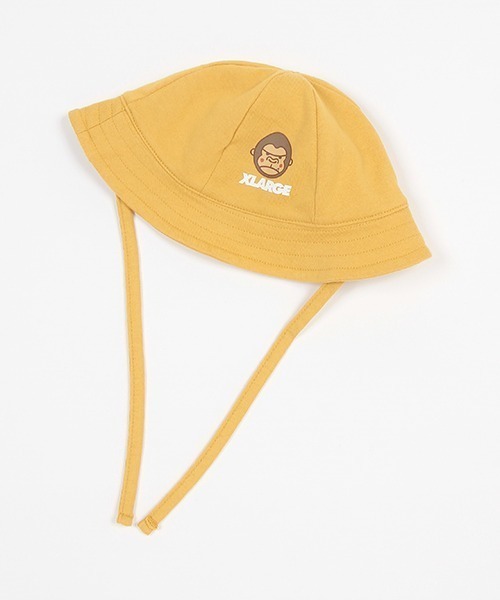 ファニーゴリラのお顔がワンポイントになったベビーハットです。頭の形にフィットするように、やわらかな生地で仕上げました。飛ばされないようにあご紐がついているのもうれしいポイント。内側にはお名前を記入できるタグつきです。