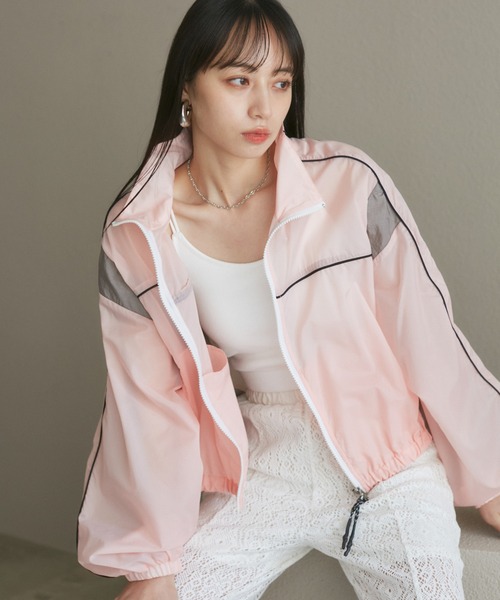 お出かけシーンに大活躍なトラックジャケット◆2024春夏◆ 【デザイン・シルエット】 トレンドのトラックブルゾンがシアー素材で登場! 裾を絞ってコンパクトにもまとまる初夏に向けて軽めな羽織アイテム。 <POINT> ・配色デザインとスポーティな生地感。 ・スポーティになりすぎない柔らかいカラーリング。 ・裾はアジャスターが付いており、絞り具合を調節可能。 ・左の袖口にはシリコンゴムのロゴマークをポイントに。 【素材】 さらったした肌ざわりでシワも気にならない素材感。 【カラー】 白×ライトブルー、ピンク×グレーの2色展開。 【おすすめのスタイリング】 ワンピース・ロングスカートやミニボトムなど甘めなアイテムにMIXするのがおすすめ! パンツスタイルでもトップスがコンパクトにまとまるので、バランスが取りやすいです。 ファスナーは逆開閉仕様なので、中心だけ留めるラフなスタイリングが叶います。 ----------------------------- 裏地:なし 光沢感:ややあり 透け感:あり 伸縮性:なし ファスナー:あり(Wジップ) ポケット:あり ボタン:なし 生地の厚さ:薄手 その他仕様:裾部分はアジャスター付き。袖口ゴム入り。 季節:春、夏、初秋 ----------------------------- 【モデル着用サイズ】 全色モデル身長:160cm、着用サイズ:F ※画像の商品はサンプルです。 実際の商品と仕様、加工、サイズが若干異なる場合がございます。 ※重量はサンプルMサイズの測量になります。サイズによって多少異なる場合があります。 ※画像によっては実際の色味と異なる場合があります。正しい色味は生地アップ画像をご確認ください。