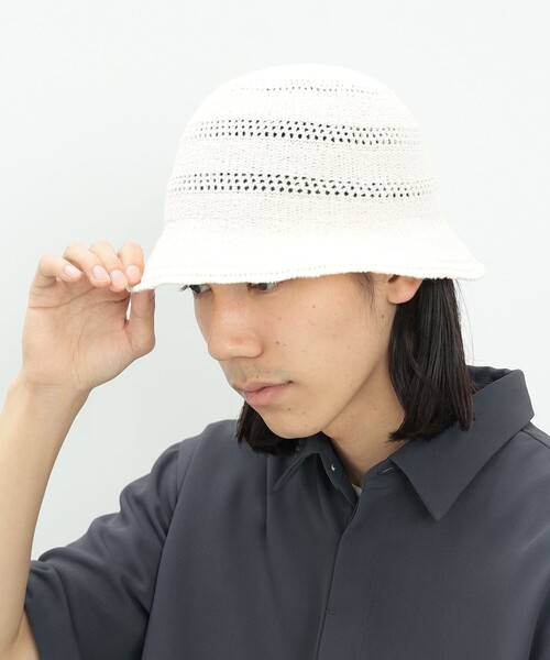 コーディネートのプラスワンに ■デザイン 洒落感のあるクロシェ編みが目を引くハット。丸みのあるシルエットで、シンプルながらもトレンド感のあるスタイルを演出します。 ■コーディネート Tシャツやデニムなどのカジュアルなアイテムと相性抜群。コーディネートにワンポイント加えるだけで、シーズンムードを盛り上げます。 ■素材 ポリエステル素材を採用。通気性のある生地感で、蒸れにくいところも嬉しいポイントです。 ※商品の色味は白背景商品単体で撮影した画像をご参照ください。 ※屋外撮影による光の当たり具合やパソコンなどの閲覧環境によって、実際の色味と異なって見える場合がございます。予めご了承ください。