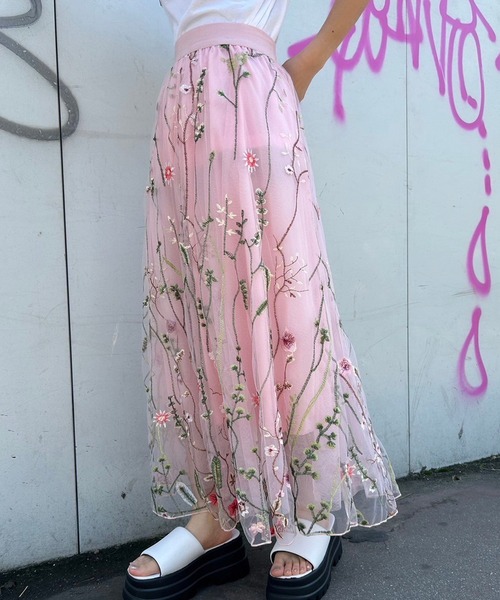 【Narcissus】フラワーチュールスカート 優しく透けるチュール地に施したフラワー刺繍が上品な印象のロングスカート。 普段のコーディネートを印象的にブラッシュアップさせ、コーディネートの主役に。 オケージョン・パーティーシーン等でも活躍するデザイン。 ※ご覧のモニター環境や撮影環境により実際の商品と多少色味が異なって見える場合がございます、ご理解の程を宜しくお願い致します。 ▼商品のお気に入り登録をおススメ致します☆サイズやカラー横のハートマークをクリック! 完売カラーの再入荷や、ラスト1点の通知、セールの際の通知を受ける事ができます。 お気に入り登録も宜しくお願い致します♪
