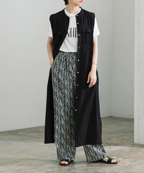 【一枚でもレイヤードでも活躍するジレワンピース】 一枚でも羽織でも、着こなし方で雰囲気が変わるジレワンピースは、ドライタッチな落ち感のある生地が肌離れも良く、身体のラインを拾わないゆとりのあるサイズ感がリラクシーな着心地。 少し肩にかかるノースリーブデザインが程よく二の腕をカバーし、前開きの比翼デザインやバンドカラーがすっきりとした印象に。 シワになりにくくご自宅での手洗いが可能なイージーケア素材も嬉しいポイントで、ウエストサイドのベルトを絞ればメリハリのあるシルエットが完成します。 POINT ・インナー次第でロングシーズン活躍 ・着回しやすいシックなカラー展開 ・サイドのベルトで身幅の調整が可能 COORDINATE ワンピースとしてはもちろん、Tシャツの上にサラッと羽織ったスタイリングもおすすめです。 【2024 Spring/Summer】【24SS】 ※この商品は、摩擦(特に湿った状態での摩擦)や、汗、雨などで濡れると、他の衣料や下着(特に白物)に色移りする場合がありますので、充分ご注意ください。 ※洗濯の時多少色落ちすることがありますので、出来るだけ単品洗いをおすすめします。 ※その他お取り扱いに関しましては、商品に付属のアテンションタグをご覧ください。 総重量 : 約345g ※商品画像は、光の当たり具合やパソコンなどの閲覧環境により、実際の色味と異なって見える場合がございます。予めご了承ください。 ※商品の色味の目安は、商品単体の画像をご参照ください。 ▼お気に入り登録のおすすめ▼ お気に入り登録商品は、マイページにて現在の価格情報や在庫状況の確認が可能です。 お買い物リストの管理に是非ご利用下さい。 素材感 透け感 : なし 伸縮性 : なし 裏地 : なし 光沢 : なし ポケット : あり