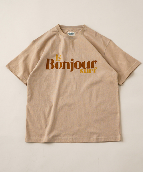 フレンチサーフらしいデザインが特徴のロゴTEE。 一枚着は勿論、インナーとしても活躍する仕上がりです。 417別注はミドルウェイトの生地を採用。 やや横広のボックスシルエットでトレンドのシルエットに。 ロゴもインラインのアイテムより小さく変更しています。 今の気分で着やすいデザインに仕上がっています。 【Le Bonjour Surf / ルボンジュールサーフ】 日本・フランス の 2 か国で 2022SS からスタートするサーフブランド 【L e Bonjour Surf 】。バスク地方のサーフスポットであるビアリッツ・オセゴーを拠点としているフランス人フォトグラファーをディレクターに加え、サーファーの顔を持つ彼が感じたカルチャー・ライフスタイル・ヒストリーを、フォトグラファーの視点で切り取りファッションとミックスしたコレクションを展開。フランスでありながら国境を接するスペインとの文化がミックスされたバスク地域の文化がデザインやカラーに表現されているブランドです。
