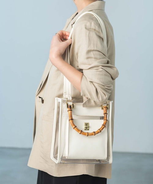 バンブーの持ち手とPVC素材が夏ムードを盛り上げてくれるバッグ。 深めのサイズと広めのマチで見た目以上に荷物もたっぷり収納可能。 前後に付いたポケットで荷物の整理もしやすく、肩掛け派の方も持ちやすい2wayデザイン。 見た目の可愛さと機能性も兼ね備えたバッグです。 【 お買い物をもっと楽しんでいただく為に 】 ▼商品のお気に入り登録▼ 完売カラーの再入荷や、ラスト1点、セールの通知をお知らせします。 割引クーポンの発行などお得な情報も! ▼ブランドのお気に入り登録▼ 新商品や再入荷など、いち早くグレディブリリアンのお得な情報を受け取ることができます! 【Gready Brilliant】 「ほどよい存在感」を大切にする大人の女性のためのセレクトショップ。