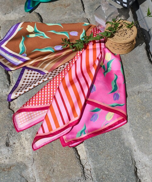 2024 Spring & Summer ite出る面によって違うプリントが見える楽しいスカーフ●どこかレトロなプリントがヴィンテージ感漂うスカーフ●大ぶりのサイズ感は首や手首に巻いたり、バッグや帽子に付けたり用途が広いのが嬉しい●とろみのある素材感が上品な印象に●チューリップ、チェック、ストライプのプリントの構造で、結び方によって異なる柄が出るように作られているのがこだわりポイント◎--------------------------------------------------------お気に入り登録のオススメ▼商品のお気に入り登録▼再入荷、残り1点、セールなどの通知を受け取ることができます。▼ブランドのお気に入り登録▼新商品や再入荷、ショップのおすすめトピックスなど、いち早くブランドの情報を受け取ることができます。-------------------------------------------------------- ※商品によって若干の誤差が生じる場合がございます。※掲載画像の商品の色味は、屋外や屋内の光の照射や角度により実物と色味が異なる場合がございます。また表示のサイズ感と実物は若干異なる場合もございますので、予めご了承ください。※着用、お取り扱いの際は、商品についている品質表示とアテンションタグを必ずご確認下さい。【Casselini/キャセリーニ】ヴィンテージテイストや時代感を取り入れ、他人とは違った自分スタイルを大事にする女の子たちへ洋服から派生した、トータルで楽しめる小物の提案。 あたりまえでない素材感や独特の配色感は女の子の毎日をHAPPYにしてくれるはずです。 身につけるだけで、その日いちにちを特別にしてくれる小さな幸せのような存在でありたいと思っています。