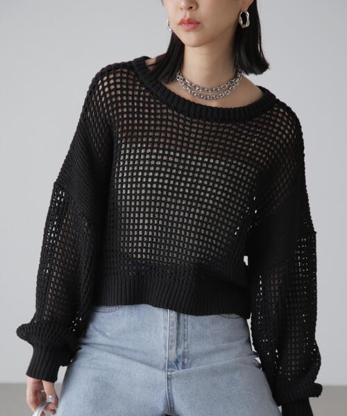 (fabric&design)前後2wayで着れるメッシュニットカーディガン。 身幅は大きくて短丈のゆったりシルエットでラフ感が可愛いです。 メッシュの編地をアームホール部分のみリブ編みに変えているので、正面から見た時に透けている部分と透けない部分があるのがシンプル過ぎないポイントです。 糸は麻タッチアクリルとポリエステルの糸を引きそろえています。 少し縮れたブークレーの糸を使用し、カジュアルな表面感に仕上げました。 (styling) インナーにタンクトップやカップ付きインナーを合わせると肌見せと抜け感があり可愛いです。 ボトムはスラックスなどで大人っぽく、カーゴパンツで辛めカジュアルにスタイリングしたりと万能です。 ■透け感:あり ■生地の厚さ:厚手 ■裏地:なし ■伸縮性:あり ■光沢:なし ■シルエット:スタンダード model:骨格ウェーブ --------------------------------------------------- ◆商品のお気に入り登録◆ お気に入りアイテムの値下げ・再入荷・在庫1点などの通知を受け取ることができます。 ◆ブランドのお気に入り登録◆ 新商品や再入荷、セール、クーポン配布などお得な情報を受け取ることができます。 --------------------------------------------------- ※ご注文いただいた予約商品のお届け時期の確認は、注文履歴ページより行えます。
