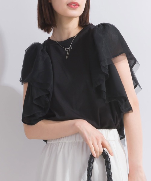 トレンド感溢れるフラッフィーフリルプルオーバー 本体はさらっとした肌触り+ストレッチの効いたジャージー生地を使用し、 着用時のストレスが少なく、速乾性に優れてるのが特徴です。 ふんわりシルエットが可愛いフラッフィーフリルデザインが採用されており、 軽やかさと華やかさのある一枚になっています。 また、肩口からシアー生地とチュール生地がたっぷりと贅沢に施されているので、 肩先が見えにくく、華奢見え効果も期待出来ます。 スカートで王道フェミニンやパンツで甘辛なスタイルを楽しんだりと 大人スタイルに活躍します。 【詳細情報】 厚み:□薄手 ■ふつう □厚手 透け感: ■なし □あり(オフホワイト少しあり) 光沢感: ■なし □あり 伸縮性: □なし ■あり 裏地: ■なし □あり ポケット:■なし □あり 重量: 約227g ※撮影場所や明るさにより 実際の商品と色味が若干異なる場合がございます。 ☆商品のお気に入り♡登録を押せば ”再入荷通知”や”残りわずか通知” 値下げのお知らせが届きます! お気に入りのブランド登録していただければ新商品入荷のお知らせも届きますので 是非登録してみて下さい
