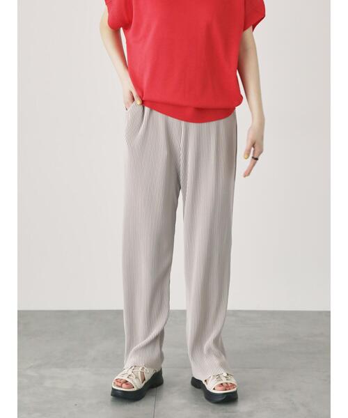 細やかなプリーツ加工が美しいルックスを演出するパンツ。裾をセルフカットできるので、お好みの丈感で着用することができます。ゴム仕様のウエストが程よいフィット感をプラス◎カラーによって柄が異なるので、様々な雰囲気を楽しめるアイテムです。〈SELF CUT OFF ITEM〉布切り専用ハサミで裾をカットしていただけます。裾から13cmまでカット可能です。※商品画像は、撮影環境やお客様のご利用のPC・スマートフォンのモニター環境などにより実物と色味に差異がある場合がございます。【その他採寸】F ウエスト:[ゴム仕様]64cm