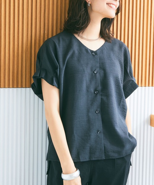 リネンライクなのにシワになりにくい!使いやすさ◎な涼しげデザインブラウス■サマナチュラ とは?リネンライクのナチュラルな風合いが夏のおしゃれを彩り着るだけで「サマ見え」するシリーズ。《嬉しい4つの機能》1.シワになりにくい 麻のようなナチュラルな風合いなのに、シワになりにくくデイリー使いをするのに嬉しい1枚。おうちでのお手入れも楽ちんです。2.マシーンウォッシャブル おうちで洗濯可能なので、毎日気にせずガシガシ使える◎3.UVカット 紫外線からお肌を守ります。4.接触冷感 さらっとひんやりタッチで夏でも涼しく。【デザイン】・袖にタックを入れ、パフスリーブのようなデザイン。1枚で映えるブラウスに仕上げました。・Vネックは詰まりすぎず、開きすぎない絶妙なラインがこだわり◎首を長く、きれいに見せてくれます。・前後差デザインで、ウエストインしやすい丈感は着こなしの幅を広げてくれます。ヒップをカバーできるのもポイント。・合わせ方次第できれいめにもカジュアルにも着こなせる万能アイテム。オフィスカジュアルスタイルにもおすすめです。・とにかく軽くて楽ちん!着心地抜群なのも嬉しいポイント。【コーディネート】・お仕事の日は、スラックスやIラインのスカートと合わせてきれいめにまとめて。・オフコーデでは、ワイドパンツやデニムなどとカジュアルなスタイルを楽しむのも◎・同素材のリネンライクセンタープレスワイドストレートパンツ(品番:391290)/リネンライクセンタープレステーパードパンツ(品番:391289)とセットアップ可能です。・さらっと着られるセットアップは1つ持っておくと困ったときに重宝すること間違いなしです。【サイズ展開】SサイズMサイズLサイズLLサイズモデル身長:160cm/167cm着用サイズ:Mサイズ【洗濯・取り扱い】洗濯:ネットを使用して洗濯可能アイロン:アイロン可乾燥:タンブル乾燥不可-------------------------------------透け感:なし伸縮性:ややあり厚み:普通--------------------------------------※撮影時のライティング、ご覧になっているモニター・PC環境により実際の商品と色味が異なって見える場合がございます。ご了承の上お買い求め下さい。