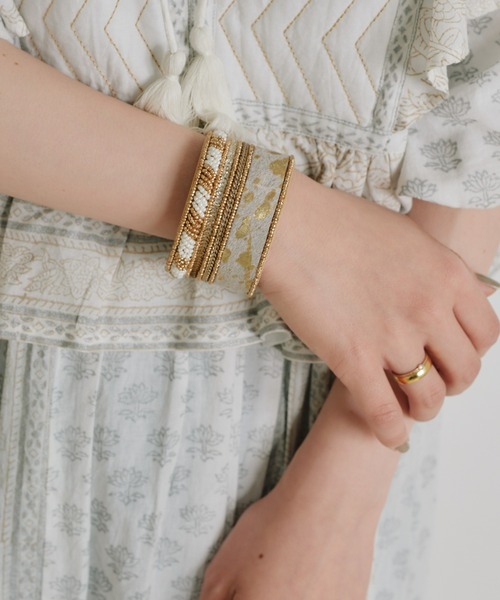 サンスクリット語で火の神という意味をもつAguni。インドの代表的なカラフルな刺繍やプリントが魅力。着飾ることなく大人の女性らしさを引き出してくれるアイテムを展開。ビーズとハラコの異素材が魅力のバングル。細かくあしらわれたビーズが女性らしい印象に。シーズン問わず活躍するアイテムです。気になった商品はお気に入り登録がオススメです!入荷情報や、クーポン情報が通知されるようになります。※画像の商品はサンプルです。 実際の商品と仕様、加工、サイズ、素材が若干異なる場合がございます。