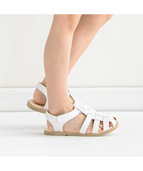 人気のカメサンダルが今年も登場しました。 今年はナチュラルな色合いが合わせやすいホワイトとキャメル(ブラウン)。 つま先まで包んでくれるメッシュタイプのアッパー+Tストラップでお子様の足をしっかりとホールドしてくれます。 ストラップはマジックテープで止めるタイプなので脱ぎ履きしやすい仕様。 つま先にきちんと反り返りのある合成底とクッション性のある中底を合わせて履き心地にもこだわりました。 上品な仕上がりなのでユニセックスでコーデに合わせられる夏の便利アイテムです。 素足はもちろんソックスと組み合わせた着こなしもおすすめです。