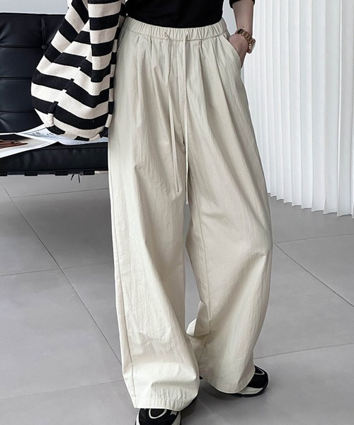 ウエストがゴムなので履きやすく、シンプルなデザインなので着回し抜群のパンツです。ワイドパンツで動きやすく、春夏のコーディネートにオススメです!サイドと後ろにポケットがついているので収納もOK!合わせやすい定番カラー展開なので、カラートップスや柄のトップスと合わせやすいです!綿が入っているので肌触りも良く、軽くハリ感もあるので、スニーカーだけでなくパンプスなどのキレイめなアイテムとも相性抜群◎