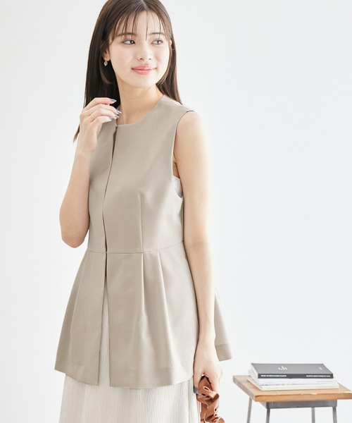 夏に嬉しいUVカット機能素材。涼しくレイヤードを楽しめるジレ。 【素材感】 ・暑い時期に嬉しいさらさらなドライタッチ素材。 【デザイン・シルエット】 ・ウエスト切り替えより裾の広がる、ポエプラムシルエット。 ・ヒップに掛かるほどの着丈。 ・詰まり気味のクルーネックデザイン。 ・同シリーズでジャケット(品番:GDV14200)も展開。 【カラー】 ・カラーによって組成の混率が異なります。 ライトグレー(08)ダークブラウン(20):(表地)ポリエステル 100% (裏地)ポリエステル 100% ネイビー(40):ポリエステル 100% ・カラーによって紫外線遮蔽率が異なります。 ライトグレー(08):80%以上 ダークブラウン(20)ネイビー(40):90%以上 【スタイリングポイント】 ・同シリーズのパンツ(品番:GDS14200)とセットアップで取り入れられる一着。 ・シンプルなカットソーに重ねるのがおすすめ。 ・春は薄手のタートルネックシャツに重ねて。 ----------------------------- 裏地:ライトグレー(08)ダークブラウン(20)はあり 透け感:裏地がない部分はややあり、ネイビー(40)はなし 伸縮性:なし 生地感・厚さ:やや薄手 ポケット:あり 季節:春・夏 ----------------------------- ※撮影時の光、お使いのモニター環境によって色の見え方が違う場合がございます。 ※モデル身長:165cm 着用サイズ:38